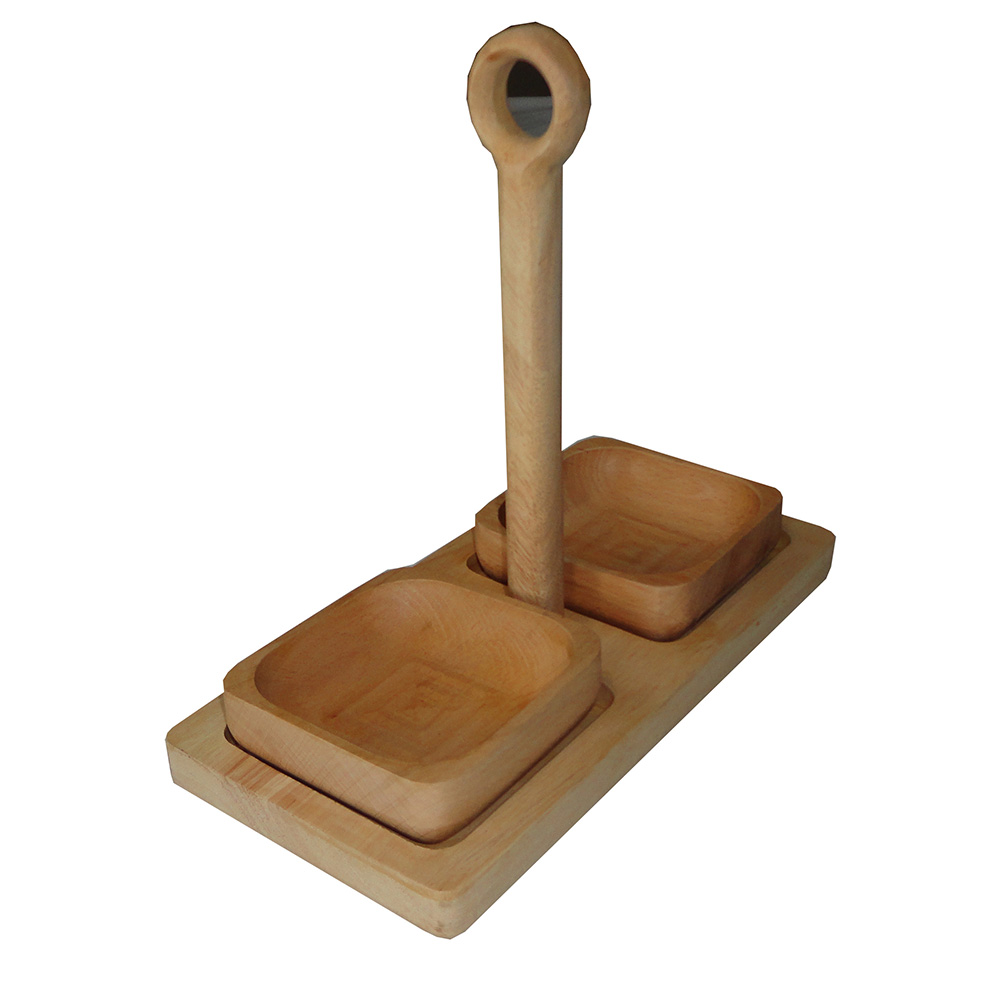 آجیل‌خوری چوبی دوخانه دسته‌دار لوکس مدل 3371 بلوط