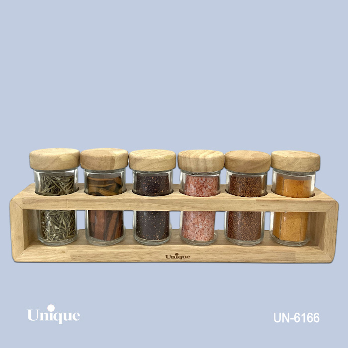 جا ادویه فلزی 6عددی مکعبی چوبی UN-6166