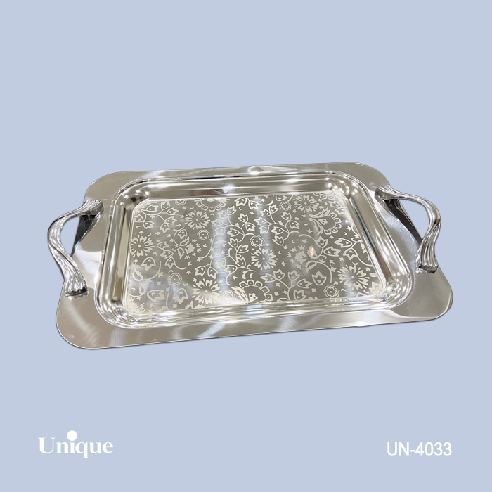 سینی براق استیل بدون پایه بزرگ UN-4033 یک محصول کاربردی و باکیفیت برای سرو و حمل غذا است. این سینی با طراحی بزرگ و بدون پایه طراحی شده و نیازهای شما را برای سرو و حمل غذا به طور کامل برطرف می کند.
