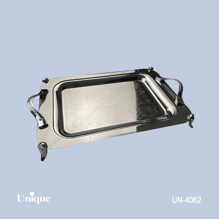 سینی بزرگ استیل پایه دار UN-4062 یک محصول کاربردی و باکیفیت برای سرو و حمل غذا است. این سینی با طراحی بزرگ و پایه دار طراحی شده و نیازهای شما را برای سرو و حمل غذا به طور کامل برطرف می کند.