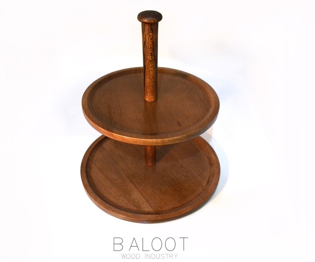 شیرینی خوری چوبی دو طبقه دایره دسته دار مدل 3409 بلوط